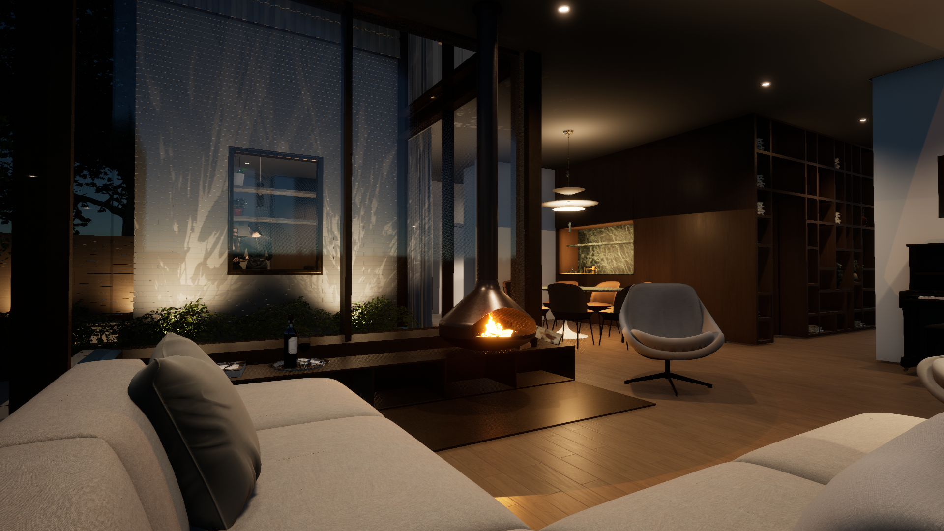 From the street, a textured brick façade and finely tuned massing strike a balance between privacy and openness. Inside, expansive glazing draws the landscape inward, while natural materials and soft lighting foster a sense of calm. A courtyard and secluded second-level terrace introduce unexpected connections to the outdoors, supporting quiet family life and intimate entertaining.